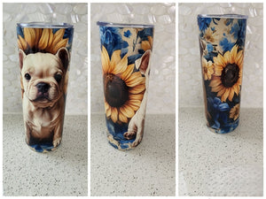 English Bulldog - English Bulldog with Sunflowers Stainless Steel Tumbler, 20 oz.