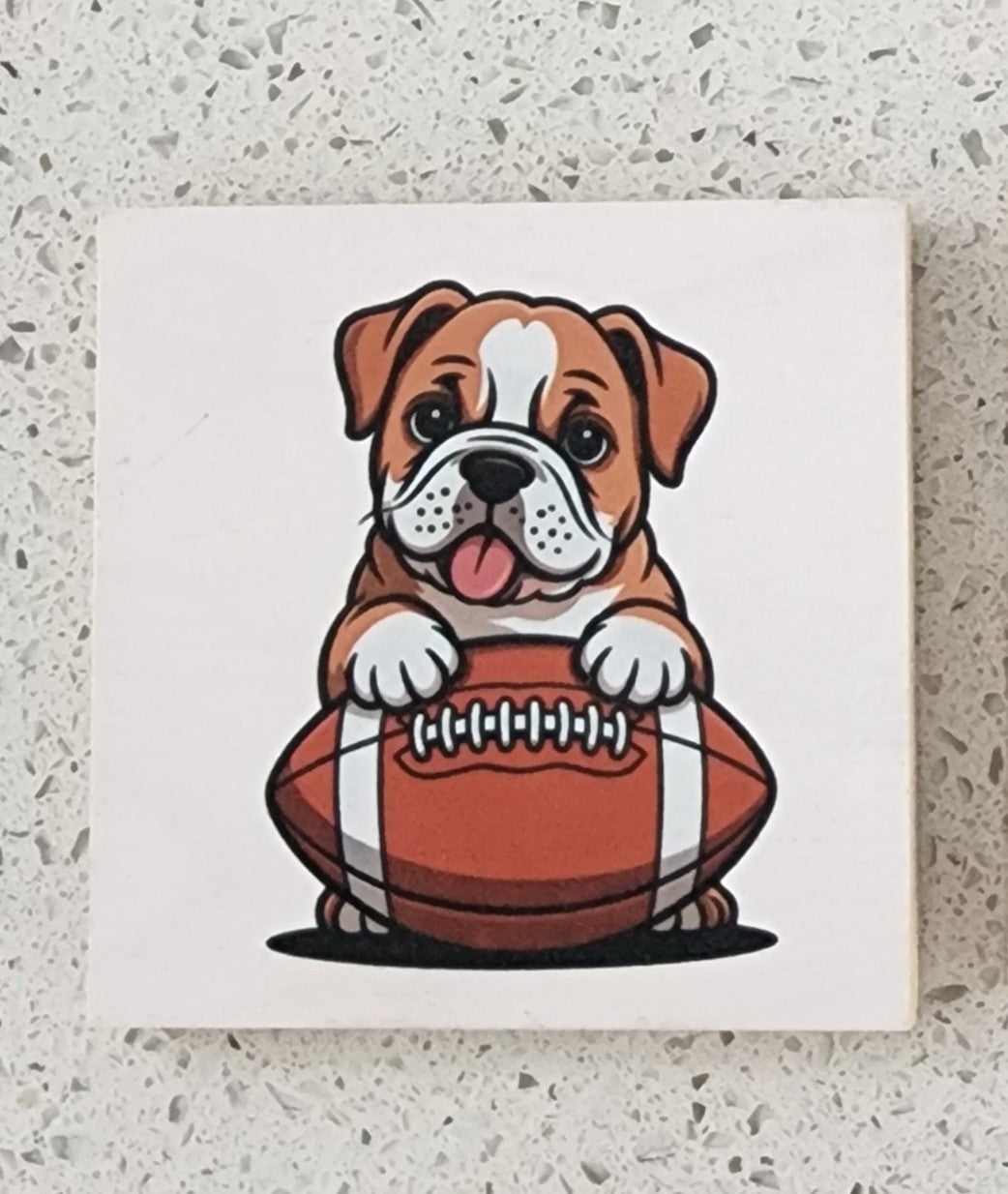 This magnet is made of solid wood with an over sized strong magnet and 3" x 3" x 1/4".
