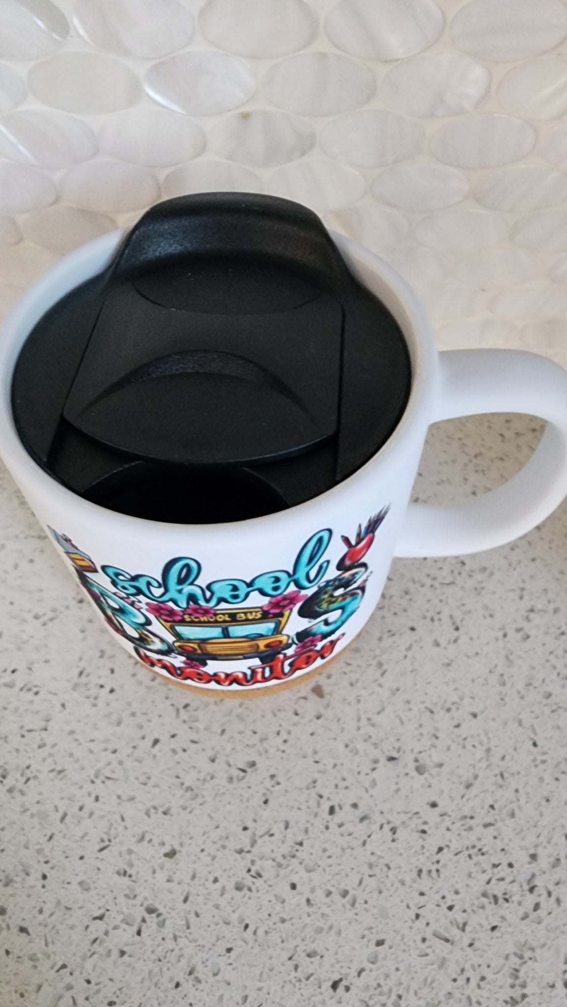 Ceramic mug with with removable cork bottom and lid, 15 oz. - Dishwasher and microwave safe. BPA and PB free.